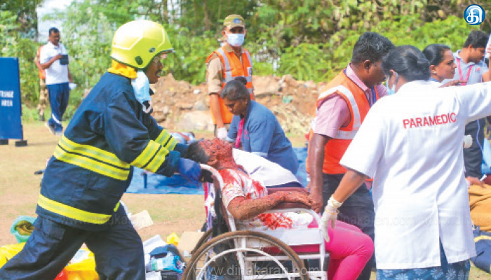 * 500க்கும் மேற்பட்ட மீட்புக்குழுவினர் பங்கேற்பு, சென்னை விமான நிலையம் அருகே பரபரப்பு