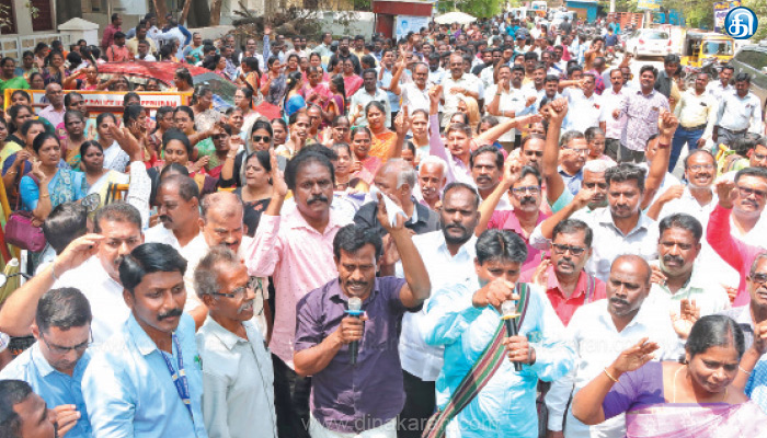 ஒருங்கிணைந்த பள்ளிக்கல்வி துறையில் பணியாற்றும் பணியாளர்கள், ஆசிரியர்கள் மற்றும் பகுதிநேர ஆசிரியர்கள் பணி நிரந்தரம் செய்யப்பட வேண்டும், அரசின் பல்வேறு துறைகளில் 30 விழுக்காட்டிற்கு மேலாக காலியாக உள்ள பணியிடங்களை நிரப்பிடுவதற்கான நடவடிக்கைகளை உடனடியாக மேற்கொள்ள வேண்டும். 21 மாத ஊதிய மாற்ற நிலுவைத்தொகை ஆசிரியர்கள், அரசு ஊழியர்கள்-பணியாளர்களுக்கு மறுக்கப்பட்டுள்ளதை உடனடியாக வழங்கிட வேண்டும் உள்ளிட்ட 10 அம்ச குறைகளை வலியுறுத்தி ஆர்ப்பாட்டத்தில் ஈடுபட்டனர். முடிவில், மாநில ஒருங்கிணைப்பாளர் சங்கர பெருமாள் நிறைவு செய்து பேசினார்.