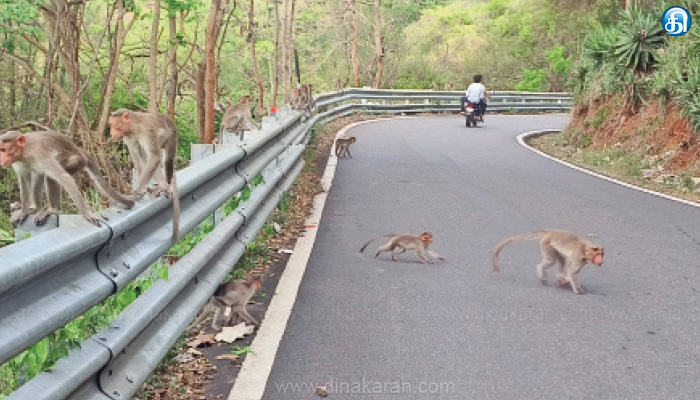 இவ்வாறு உணவை நோக்கி காத்திருக்கும் குரங்குகள் சாலையின் குறுக்கும், நெடுக்குமாக ஓடுவதால் அவ்வப்போது வாகனங்களில் அடிபட்டு இறக்கும் சம்பவங்களும் நடக்கின்றன. இதுதவிர குரங்குகள் சாலையின் இடையில் பாய்வதால் வாகனங்களில் செல்வோர் நிலைதடுமாறும் நிலை ஏற்படுகிறது. எனவே வனப்பகுதிக்குள் குரங்குகளுக்கு உணவு, தண்ணீர் வசதிகள் செய்ய உரிய நடவடிக்கை எடுக்க வேண்டும் என கோரிக்கை எழுந்துள்ளது.