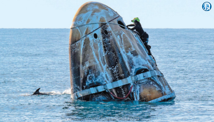 டிராகன் விண்கலம் புளோரிடா கடலில் இறங்கிய பிறகு குளிர்விப்புக்காக காத்திருந்த சமயத்தில் சில டால்பின்கள் விண்கலத்தை சுற்றி வலம் வந்தன. இது பத்திரமாக பூமிக்கு திரும்பிய சுனிதா வில்லியம்ஸ் உள்ளிட்ட 4 வீரர்களை உலக மக்கள் மட்டுமின்றி டால்பின்கள் வாழ்த்து தெரிவித்தது போல் இருந்தது.