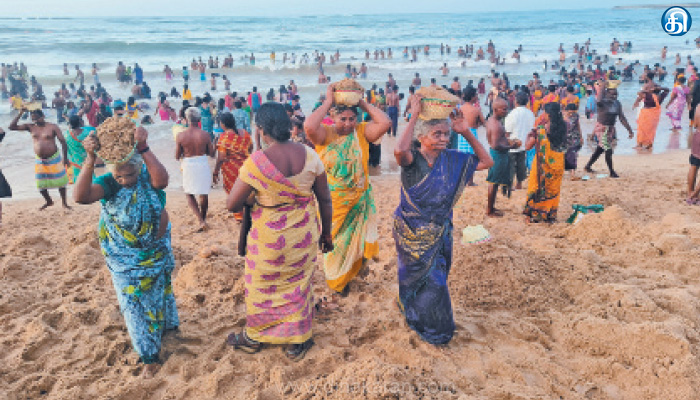 *நேர்ச்சையாக கடலில் பிளாப்பெட்டிகளில் மணல் எடுத்த பக்தர்கள்