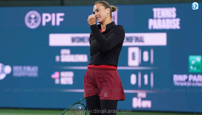 இண்டியன்வெல்ஸ்: இண்டியன்வெல்ஸ் ஓபன் டென்னிஸ் மகளிர் ஒற்றையர் பிரிவு அரையிறுதிப் போட்டிகளில் உலகின் நம்பர் 1 வீராங்கனை அரைனா சபலென்கா, ரஷ்ய வீராங்கனை மிர்ரா ஆண்ட்ரீவா அபார வெற்றி பெற்று இறுதிப் போட்டிக்கு தகுதி பெற்றுள்ளனர். அமெரிக்காவின் கலிபோர்னியா மாகாணத்தில் உள்ள இண்டியன்வெல்ஸ் நகரில் இண்டியன் வெல்ஸ் டென்னிஸ் சாம்பியன்ஷிப் போட்டிகள் நடந்து வருகின்றன. நேற்று நடந்த மகளிர் ஒற்றையர் பிரிவு அரையிறுதிப் போட்டியில் பெலாரசை சேர்ந்த உலகின் நம்பர் 1 வீராங்கனை அரைனா சபலென்காவும் (26 வயது), அமெரிக்காவை சேர்ந்த உலகின் 5ம் நிலை வீராங்கனை மேடிசன் கீசும் (30 வயது) மோதினர்.