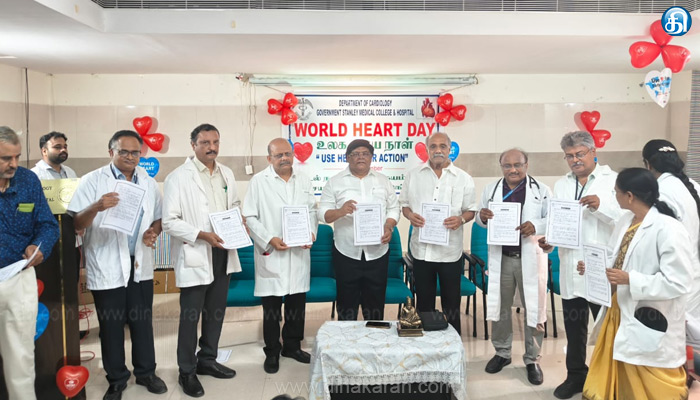 தண்டையார்பேட்டை: உலக இதய தினத்தை முன்னிட்டு ஸ்டான்லி அரசு மருத்துவமனையில் நடந்த பேரணியை ஐட்ரீம்ஸ் மூர்த்தி எம்எல்ஏ தொடங்கி வைத்தார். ஸ்டான்லி அரசு மருத்துவக் கல்லூரி மற்றும் மருத்துவமனையில் உலக இதய தினம் நேற்று அனுசரிக்கப்பட்டது. உலக இதய தினத்தின் முக்கியத்துவத்தை எடுத்துரைக்க விழிப்புணர்வு பேரணி மருத்துவமனையில் நடைபெற்றது. இந்த பேரணியை ராயபுரம் எம்எல்ஏ ஐட்ரீம் மூர்த்தி கொடியசைத்து தொடங்கி வைத்தார். மருத்துவமனை வளாகம் முழுவதும் இந்த பேரணி நடைபெற்றது.