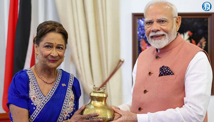 இந்த விருந்தில் பங்கேற்ற பிரதமர் நரேந்திர மோடி, கமலா பெர்சாத்துக்கு அயோத்தி ராமர் கோயில் மாதிரியையும் சரயு நதி புனித நீர் மற்றும் மகா கும்பமேளா புனித நீர் உள்ளிட்டவற்றை பரிசாக வழங்கியுள்ளார். இந்த பரிசுகள், இந்தியாவுக்கு டிரினிடாட் மற்றும் டொபேகோவுக்கும் இடையேயான ஆழமான கலாச்சாரம் மற்றும் ஆன்மீக பிணைப்புகளை அடையாளப்படுத்துவதாக பிரதமர் மோடி தனது எக்ஸ் பக்கத்தில் தெரிவித்துள்ளார். தொடர்ந்து, டிரினிடாட் டொபாகோ நாடாளுமன்றத்திலும் பிரதமர் மோடி உரையாற்ற உள்ளார். அதைத் தொடர்ந்து, 3ம் கட்டமாக அர்ஜென்டினா செல்லும் பிரதமர் மோடி, வரும் 6, 7ம் தேதிகளில் பிரேசிலில் நடக்கும் பிரிக்ஸ் மாநாட்டில் பங்கேற்க உள்ளார்.