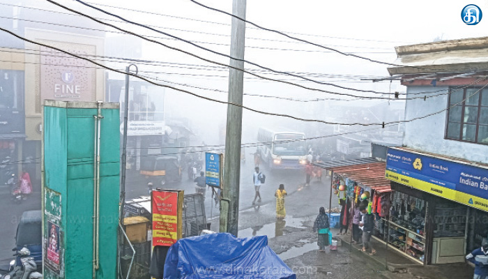 மேலும் பகலில் ஓர் இரவு போல காட்சியளித்தது. அதனால் பஜார் பகுதிகளில் மக்கள் நடமாட்டம் இல்லாமல் வெறிச்சோடி காணப்பட்டது. கடந்த சில நாட்களாக வெயில் தாக்கம் அதிகரித்து காணப்பட்ட நிலையில் நேற்று குளிரின் தாக்கம் அதிகமாக இருந்தது. காலநிலை மாற்றம் காரணமாக பொது மக்களின் இயல்பு நிலை முற்றிலும் பாதிக்கப்பட்டது.